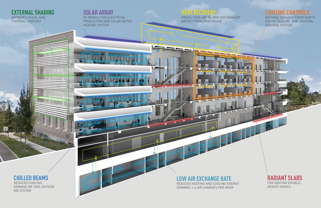 Why do that when we can have both: gorgeous and creative details and focal points in a building that are aligned with responsible environmental standards, don't cause uncomfortable hot or cold spots, and don't overcomplicate HVAC design. Constraints are the conditions for creativity, and we love to work with architects who are excited by this challenge!